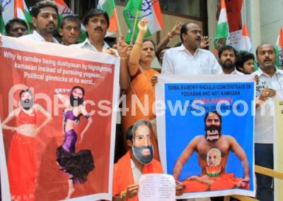 Event Description : Members of Bangalore Youth Congress protesting against Yoga Guru Babaramdev for his hate statement against Congress Prime Minister Candidate Rahul Gandhi, in Bangalore on Saturday 26th April 2014