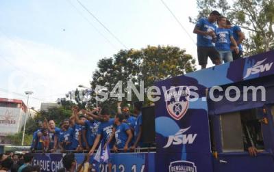 Photo Caption : Bengaluru FC Road Show, celebrating their victory in I League Championship, near Ashoknagar, in Bangalore on Tuesday 29th April 2014