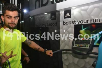 Indian Cricketer Virat Kohli walks in the treadmill, during the TCS World 10K Active Expo, at Kormangala Indoor Stadium, in Bangalore on Saturday 10th May 2014