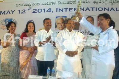 Event Description : K Siddaramaiah, Chief Minister with UT Khader, Health Minister and others felicitated beneficiaries with Florence Nightingale Award 2014, celebrating International Nurses Day, at Banquet Hall, Vidhana Soudha, in Bangalore on Monday 12th May 2014
