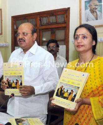 Photo Caption : TB Jayachandra, Minister for Law and Parliamentary Affairs with Shalini Rajaneesh, Principal Secretary releasing Sakala Report, at Vidhana Soudha, in Bangalore on Thursday 22nd of May 2014