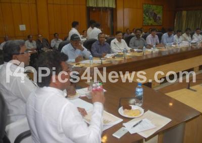 Photo Caption : K Siddaramaiah, Chief Minister reviewing the developments with MB Patil, irrigation Minister and irrigation department officers, at Krishna, in Bangalore on Wednesday 28th May 2014