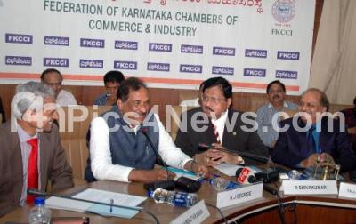 Photo Caption : KJ George, Home Minister addressing with R Shivakumar, President, FKCCI, S Sampathraman, Senior Vice President, FKCCI and others, during the Interactive Meeting, at FKCCI, in Bangalore on Tuesday 3rd June 2014