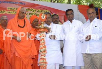 Photo Caption : K Siddaramaiah, Chief Minister with Sreenivas Prasad, Revenue Minister, HS Mahadev Prasad, Co operation Minister Shri Shivarathri Deshikendra Mahaswamy and others lighting lamp to inaugurate Basava Jayanti, at Suttur Mutt, in Mysore on Saturday 7th June 2014