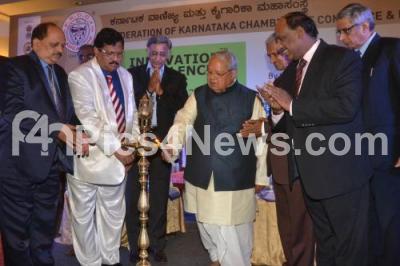 Photo Caption : R Shivakumar, President, FKCCI with Kalraj Mishra, Union Minister of MSMEs, Tallam R Dwarakanath, Senior Vice President Elect, FKCCI and others seen lighting lamp to inaugurate the Innovation Excellence Award for MSMEs, at Lalit Ashok, in Bangalore on Tuesday 17th June 2014