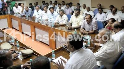 Photo Caption : Ramalinga Reddy, Bangalore District incharge addressing Mandur Villagers, following Chief Ministers assurance that dumping in Mandur Village of Hoskote Taluk will be stopped within 5 months, at Vikasa Soudha, in Bangalore on Tuesday 17th June 2014