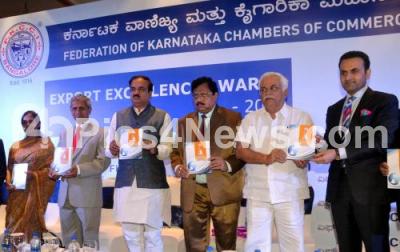 RV Deshpande, Minister, R Shivakumar, President FKCCI, Dr Nahid Rashid, Commercial Consul, Embassy of Bangladesh and others releasing the brochure of Export Excellence Award 2014 by FKCCI at Hotel Taj West End, in Bangalore on Saturday 21st June 2014
