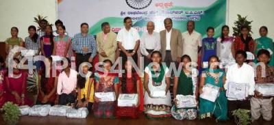 Photo Caption : Merit students being felicitated by Dr Sa Shi Marulaiah during Pratiba Puraskara programme, organized by Bangalore City Police, also seen are Police Commissioner Ragavendra Auradkar, Kamalpant and others, in Bangalore on 28th of June 2014