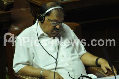 Photo Caption : Qamrul Islam, Minister for Minority Affairs taking a short nap, during the Assembly Session, at Vidhana Soudha, in Bangalore on Thursday 3rd July 2014