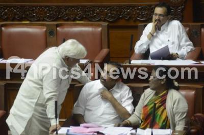 Photo Caption : HK Patil, RDPR Minister seen interacting with MLCs G Parmeshwar and Motamma, during the Council Session, at Vidhana Soudha, in Bangalore on Friday 11th July 2014