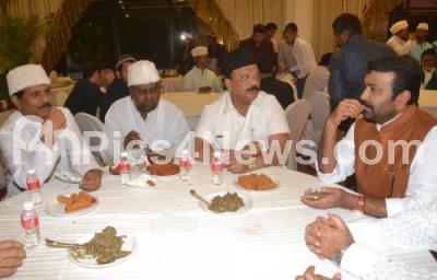 Photo Caption : H Anjaneya, Social Welfare Minister with Roshan Baig, Minister for Information, NA Haris, MLA and others seen during the Iftar Party, organized by Fiza Group, at Sheesh Mahal, Palace Grounds, in Bangalore on Friday 11th July 2014