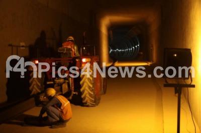 Photo Caption : BMRCL Employees installing tracks in the tunnels, at Cubbon Park Station, in Bangalore on Saturday 12th July 2014