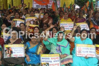 Event Description : Members of BJP mahila morcha protested against the state government for the recent rape incidents, the protest was held at Town Hall, in Bangalore on Monday 21st July 2014