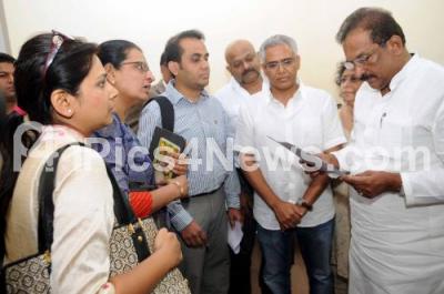 Photo Caption : Activist RK Mishra and members of Whitefield Rising met Home Minister KJ George at his residence and submitted a memorandum regarding the rape case incidents in the Bangalore city on Monday 21st July 2014