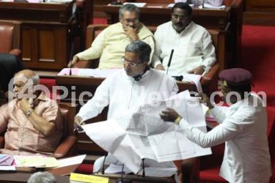 Photo Caption : K Siddaramaiah, Chief Minister looking at the BBMP Plans, during the Council Session, at Vidhana Soudha, in Bangalore on Thursday 24th July 2014