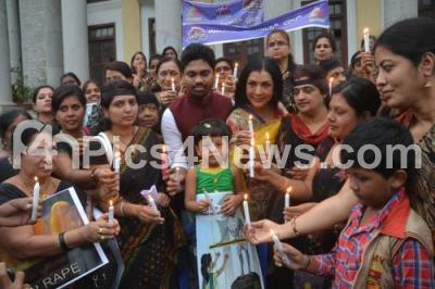 Photo Caption : Members of Suvarna Ladies Club lit candles condemning Crimes against women and children, demanding stringent punishment to the rapists, at Town Hall, in Bangalore on Friday 25th July 2014