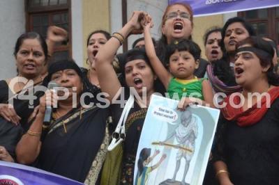 Photo Caption : Members of Suvarna Ladies Club protesting to Stop Violence against Women and demanding stringent punishment to the rapists, at Town Hall, in Bangalore on Friday 25th July 2014