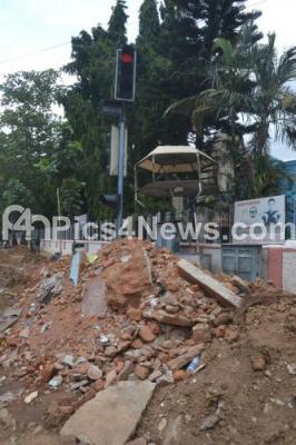 Building demolition waste dumped on the main road, causing an embarrassing view of Green City, at JC Road, in Bangalore on Sunday 27th July 2014