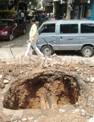 A view of manhole left open neglected in the street which might give rise to unwanted incidents Vidya Aranya Nagar, Magadi Road, in Bangalore on Wednesday 16th July 2008.