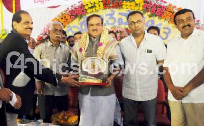 Photo Caption : Union Minister Anantkumar being felicitated by Minister Dinesh Gundu Rao, MLA Ravisubramanya, Pundalika Halambi, President, Kannada Sahitya Parishat and others, during the Suvarna Mahotsava (Golden Jubilee) of Dakshina Kannada Koota Brahamanara Mitra Mandali, at Guru Narasimha Kalyana Matapa, Basavanagudi, in Bangalore on Sunday 27th of July 2014