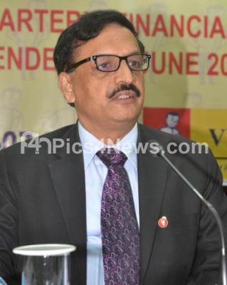 Photo Caption : V Kannan, CMD, Vijaya Bank addressing during the announcement of Quarterly Financial results for the quarter ended with June 2014, the press meet was held at Head Office, in Bangalore on Monday 28th July 2014