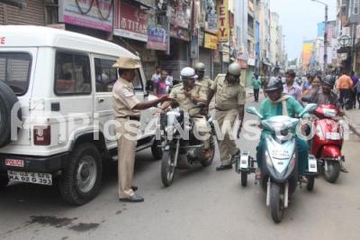 Photo Caption : Bangalore City Police are on high alert in the wake of Bangalore Bandh called by various organizations against increasing incidents of Rape, in Bangalore on Thursday 31st July 2014