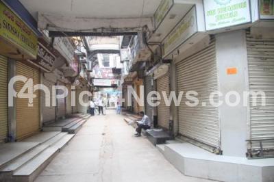 Photo Caption : Deserted look as all shops are closed observing Bangalore Bundh called by various organizations against increasing incidents of Rape, at Raja Market, in Bangalore on Thursday 31st July 2014