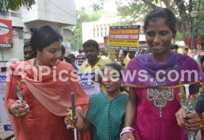 Photo Caption : Actress and MLC, Tara with Alok Kumar, ACP and Dayanand, ACP of Traffic were seen exchanging roses with blind children on the occasion of Friendship Day, a walkathon was organised for these blind children make it a special friendship day from NGO hall cubbon park, in Bangalore on Sunday 3rd August 2014