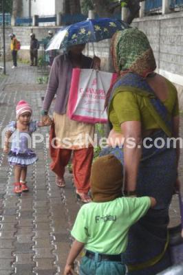 Photo Caption : People use Umbrellas, as Bangalore city witnessed light rain on Tuesday 5th August 2014