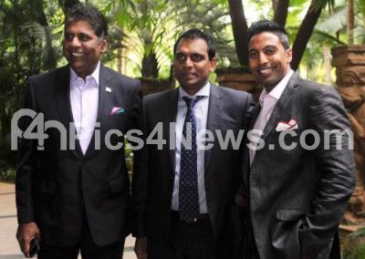 Photo Caption : Vijay Amritharaj with his son Prakash Amritharaj and Jacob John, Brand head of Louis Philippe seen during the press conference about the show In Pursuit with Excellence, in Bangalore on Tuesday 5th August 2014