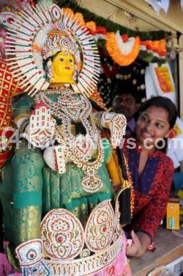 Varmahalakshmi idols being sold ahead for the Festival, at Gandhi Bazar, in Bangalore on Wednesday 6th August 2014