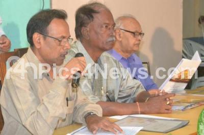 Photo Caption : Dr K Ramakrishna addressing with H Kodandaramaiah during the press conference regarding the Independence Day Flower Show, at Lalbagh, in Bangalore on Wednesday 6th August 2014