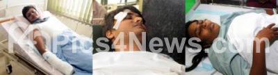 Photo Caption : Residents Shafique, Rahul and Eeramma were injured in a suspected cylinder blast at a house at Doddaiah Road, Ammyakka Layout, at Kamanahalli, in Bangalore on Wednesday 6th August 2014