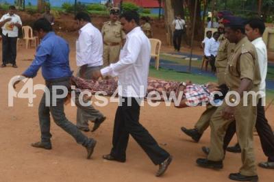 Photo Caption : KPSC candidate is being driven to hospital during Gazette probationers of the 2011 KAS batch stage hunger strike at Freedom Park against the cancellation of final list of selected 362 candidates by KPSC, in Bangalore on Tuesday 12th August 2014