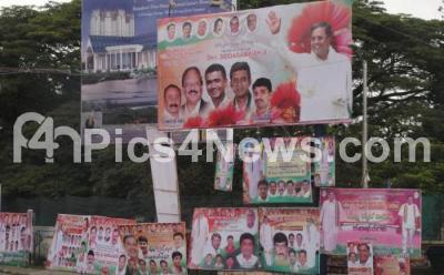 Photo Caption : Illegal flex banners wishing 67th Birthday of Chief Minister K Siddaramaiah were spotted near Windsor Manor, in Bangalore on Tuesday 12th August 2014