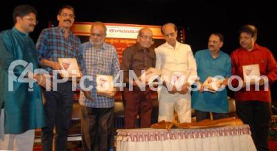 Photo Caption : Dorebhagwan with Rajan Nagendra, MN Vyasarao, Tulsiram Naidu and PB Nandakishore and others seen releasing Dr PB Srinivas Book, organized by Ragamadhuri, at Ravindra Kalakshetra, in Bangalore on Tuesday 12th August 2014