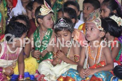 Event Description : School Children play drama, celebrating Krishna Janmashtami, at Little Lilly School, Nagarabhavi, in Bangalore on Thursday 14th August 2014