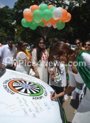 Photo Caption : Former Miss Earth Nicole Faria with Members of Round Table India initiating a Freedom Drive Signature Campaign, celebrating Independence Day, at Cubbon Park, in Bangalore on Friday 15th August 2014