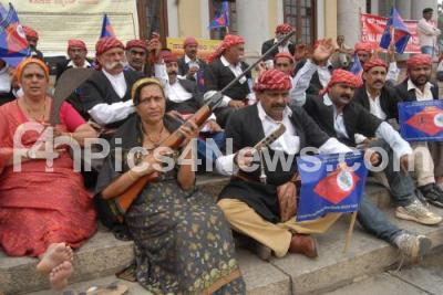 Event Description : Members of Kodava Samaj protest with weapons, a struggle for Ethno Tribal National Minority Idetity and Codavaland, at Town Hall, in Bangalore on Monday 18th August 2014