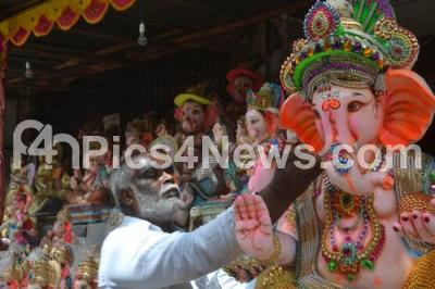 Event Description : Ganesha idols being sold, ahead for Ganesha Chaturthi Festival, in Bangalore on Sunday 24th August 2014
