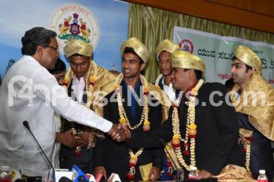 Chief Minister K Siddaramaiah felicitated Glasco Common Wealth Games Medal Winners, at Home Office, Krishna, in Bangalore on Monday 25th August 2014