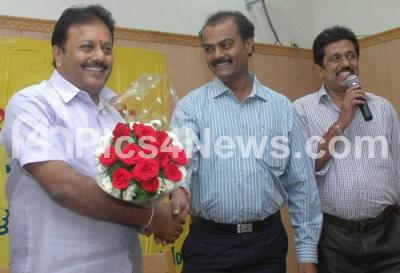 Photo Caption : Cheluvarayaswamy, JDs Leader being welcomed by Sridhar, President, Press Club with Sadashiv Shenoy, General Secretary, Press Club, during the Meet the press programme, at Press Club, in Bangalore on Wednesday 27th August 2014