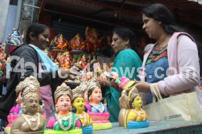 Photo Caption : People purchasing Gowri idols, on the eve of Gowri Ganesha Festival, at Malleshwaram, in Bangalore on Wednesday 27th August 2014
