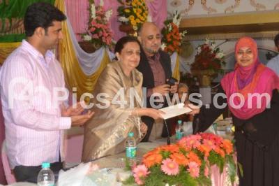 Photo Caption : Husna Ziaulla Shariff, President, Bazm e Niswan distributing scholarship to Students, also seen Rizwan Arshad and others, during the 41st Annual Scholarship Programme of Bazm e Niswan Charitable Trust, at Samad House, in Bangalore on Wednesday 27th August 2014