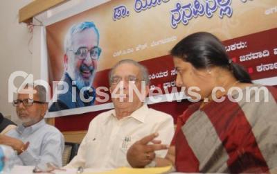 Photo Caption : Prof GK Govind Rao with Dr K Maralusiddappa, Vasundara Bhupati and others seen during the Memorial programme of Dr UR Ananthmurthy, at SCM House, in Bangalore on Wednesday 27th August 2014