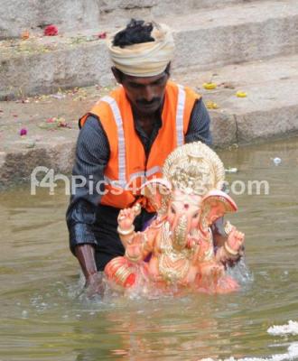 Event Description : Volunteers immersing Ganesha idols, celebrating Ganesha Chaturthi Festival, at Yediyur Lake, in Bangalore on Saturday 30th August 2014