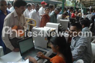 Photo Caption : People filing their grievances in Computers, during the Janata Darshan programme, at Krishna, in Bangalore on Tuesday 2nd September 2014