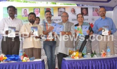 Photo Caption : Dr Siddalingaiah with Doddarange Gowda, Dr Leela Devi R Prasad, Shreesha Belakavadi and others seen releasing various books, during the Karnataka Pustakotsava 2014 (Karnataka Book Festival), at Freedom Park, in Bangalore on Friday 5th September 2014