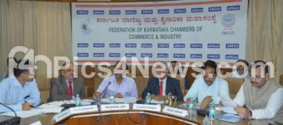 Photo Caption : S Sampathraman, President, FKCCI discussing with Mahendra Jain, IAS, Principal Secretary, Co operation Department, GoK, during the Interactive Meeting, also seen Bharath Kumar R Shah, Chairman, Internal Trade Committee, Tallam R Dwarakanath, Senior Vice President, FKCCI, Dr Muddu Mohan, IAS, Director, Agriculture Marketing Department and others, at FKCCI, in Bangalore on Friday 5th September 2014
