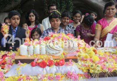 Photo Caption : Children showering flowers on baby Mary to celebrate her Birthday, at Our Lady of Lourdes Church Ulsoor, in Bangalore on Monday 8th September 2014